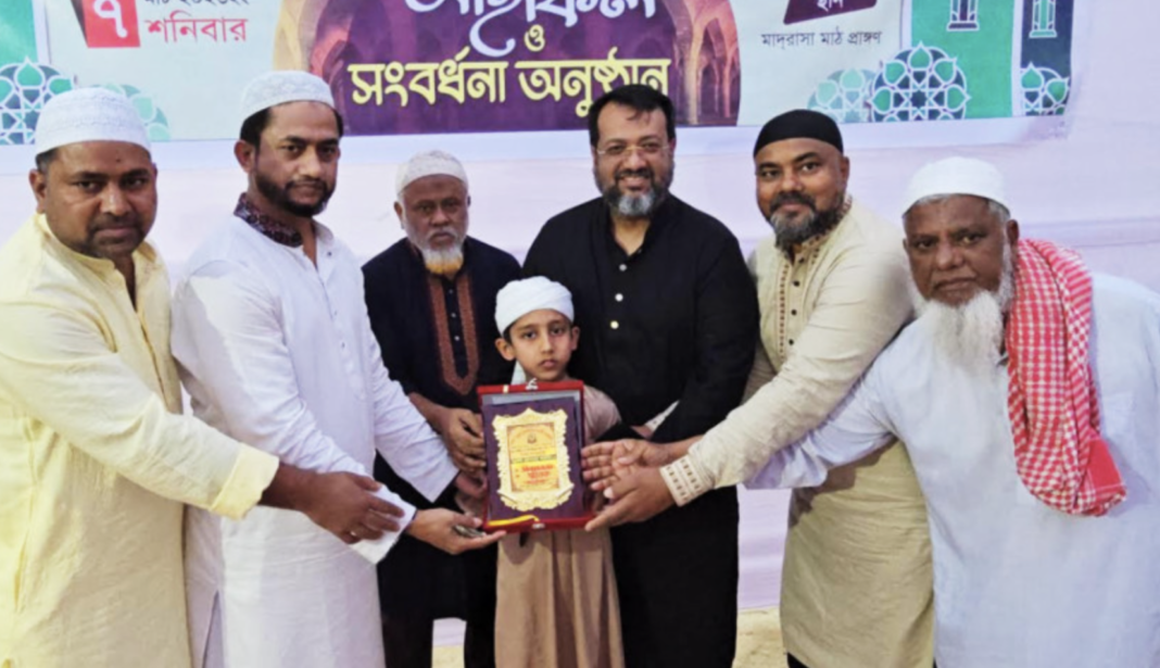 A 10-year-old child, Zubair Ahmed, has set a unique example of talent and dedication. This student of Darus Sunnah Mujahidiya Lavrapara Qawmi Madrasa and Orphanage in Bhulta Union of Rupganj Upazila of Narayanganj has completed the memorization of the Holy Quran in just 5 and a half months ( 5 months and 17 days ) . The madrasa authorities celebrated Zubair’s incredible success with an iftar mahfil and reception organized in the madrasa premises yesterday ( March 7 ) afternoon.